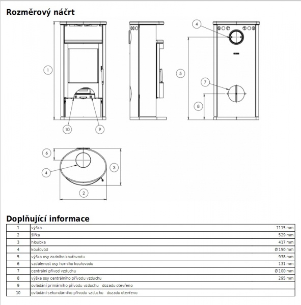 Možnost využití horního a zadního vývodu pro kouřovod.