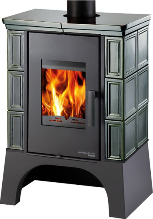 HAAS + SOHN - EBOLI AL II s výměníkem + vychl. smyčka, kachle zelená, podstavec černý