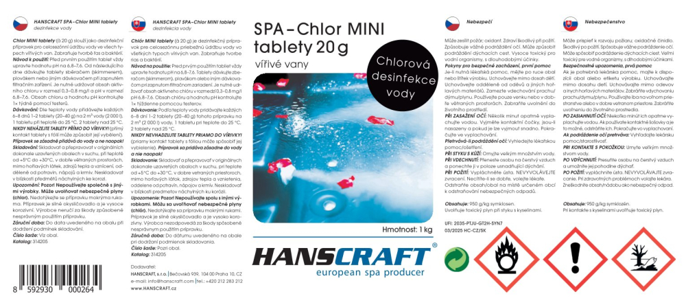 HANSCRAFT SPA - Chlor MINI tablety 20g - 1 kg