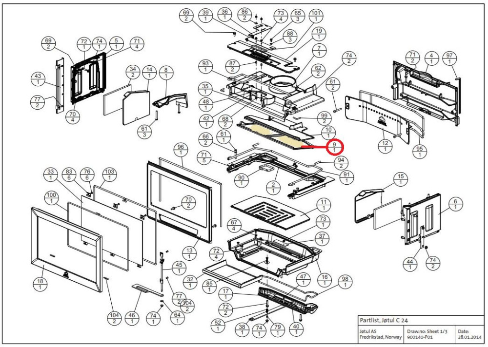 Jotul - náhradní deflektor C 24 spodní - 12044815