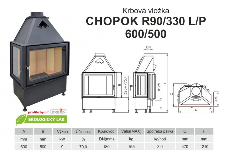 Krbová vložka KOBOK CHOPOK R90x330 600 500 - Rohová - Dvoje dveře - Levá