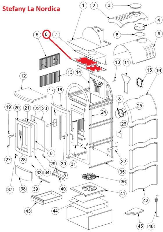 La Nordica - náhradní deflektor nerez pro kamna Stefany, Norvegia, Svezia