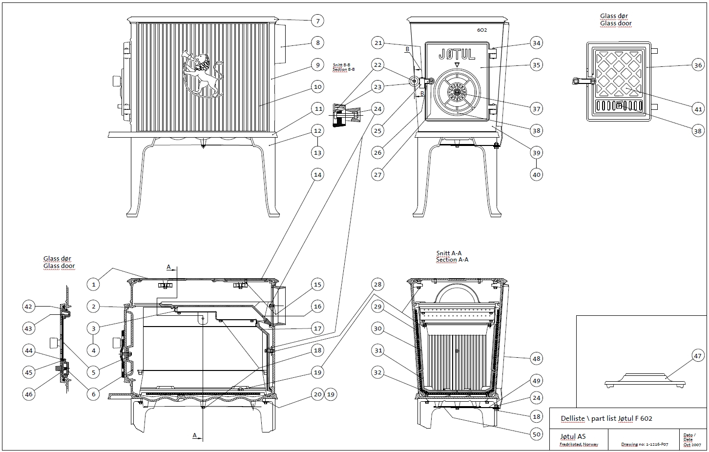 Náhradní díly pro kamna JOTUL F 602 se systém CB ( clear burn - čisté spalování )