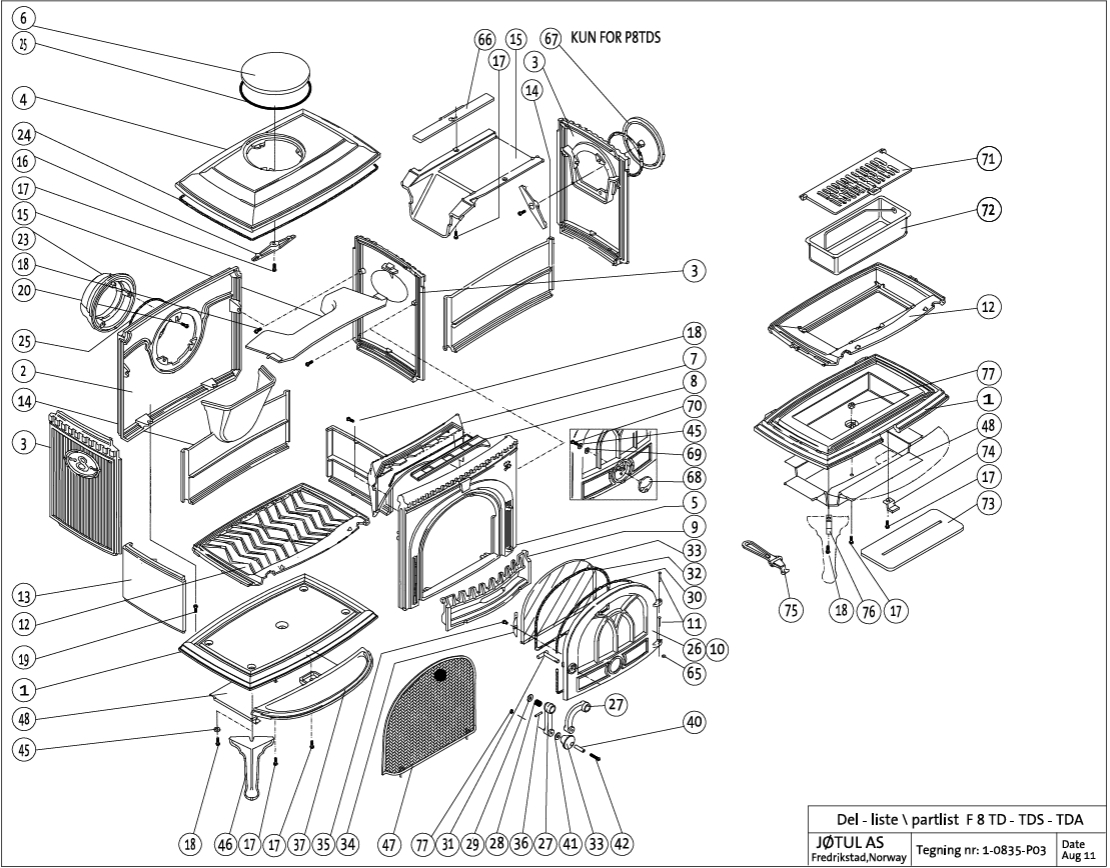 JOTUL - boční vnitřní díl F 8 TD cena je 1ks - potřebné 2ks - díl je oboustranný |