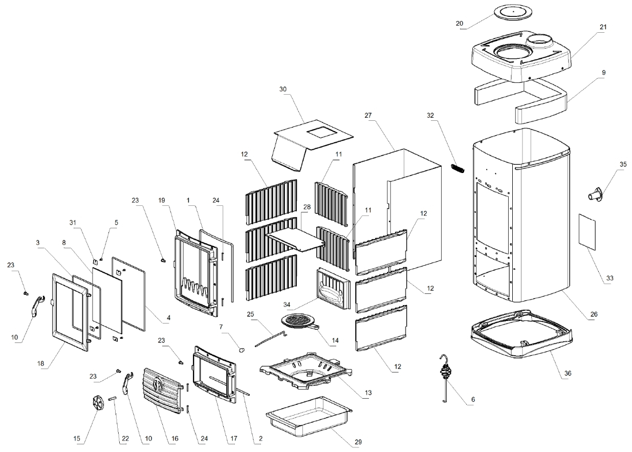 La Nordica - Spodní deflektor spalin pro kamna TEA, MAX, SUPER MAX, GEMMA, GEMMA FORNO |