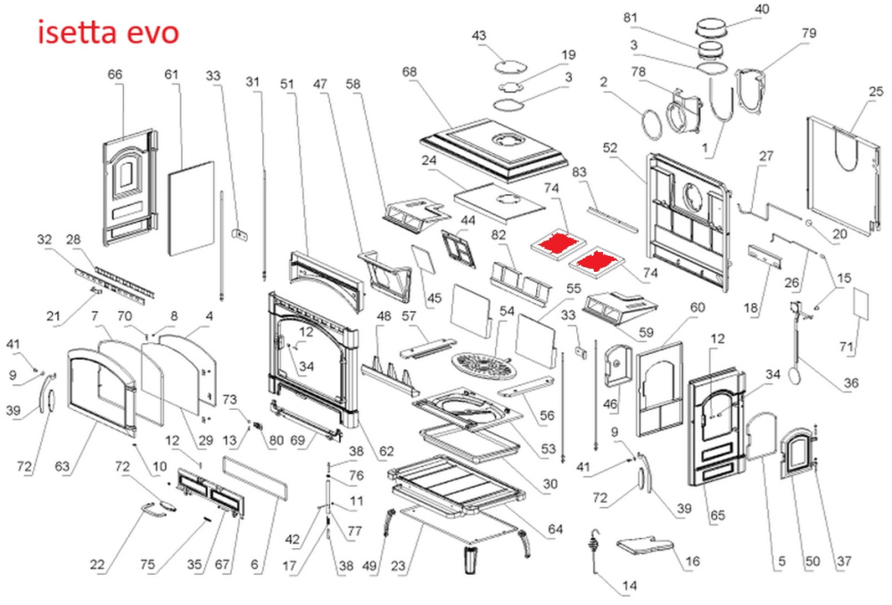 La Nordica - Roztápěcí komínová klapka pro kamna ISETTA, ISOTTA