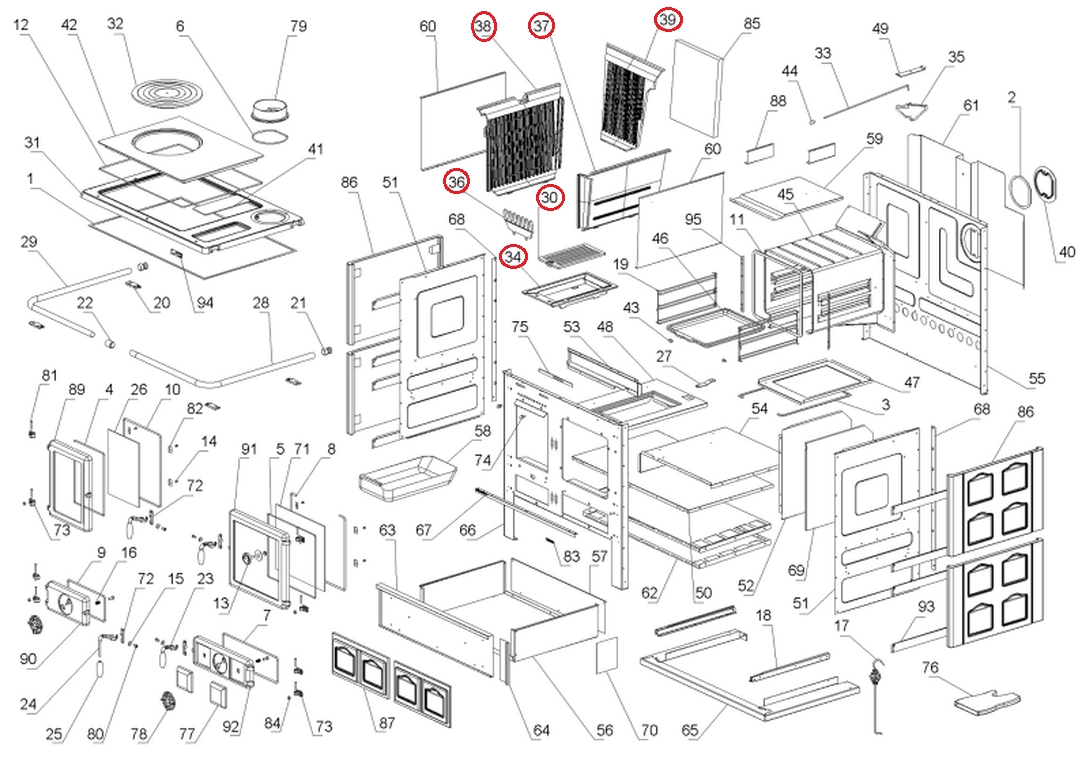 La Nordica - náhradní kachle bez vzoru - spodní šuplík sporák ROSA - bordo